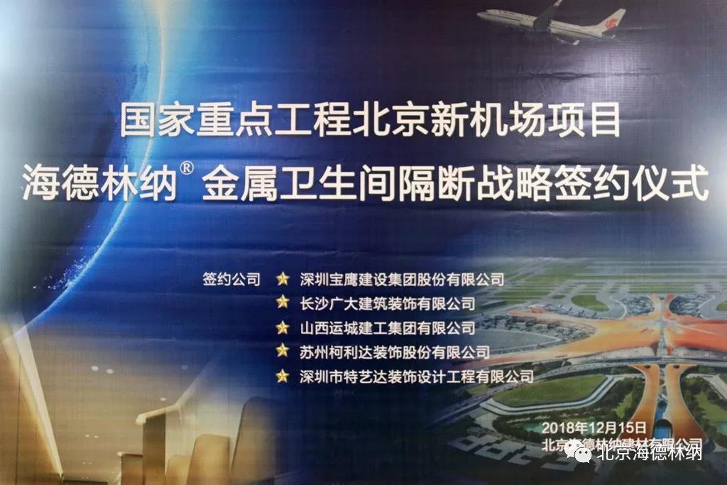 2018年年底,海德林納與多家裝飾公司簽訂了戰(zhàn)略協(xié)議,正式確定了北京新機(jī)場(chǎng)衛(wèi)生間隔斷的整體方案;